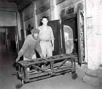 ![]() Click for larger image Sig Corps: pic 15006 Crematorium at Moji with Japanese attendant and PhM2c John Shipp 14 Sep 1945 |
