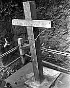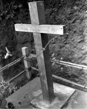 ![]() Click for larger image Sig Corps: pic 15053 Cross marking the ashes of some 302 POWs who died here at Moji 15 Sep 1945 |